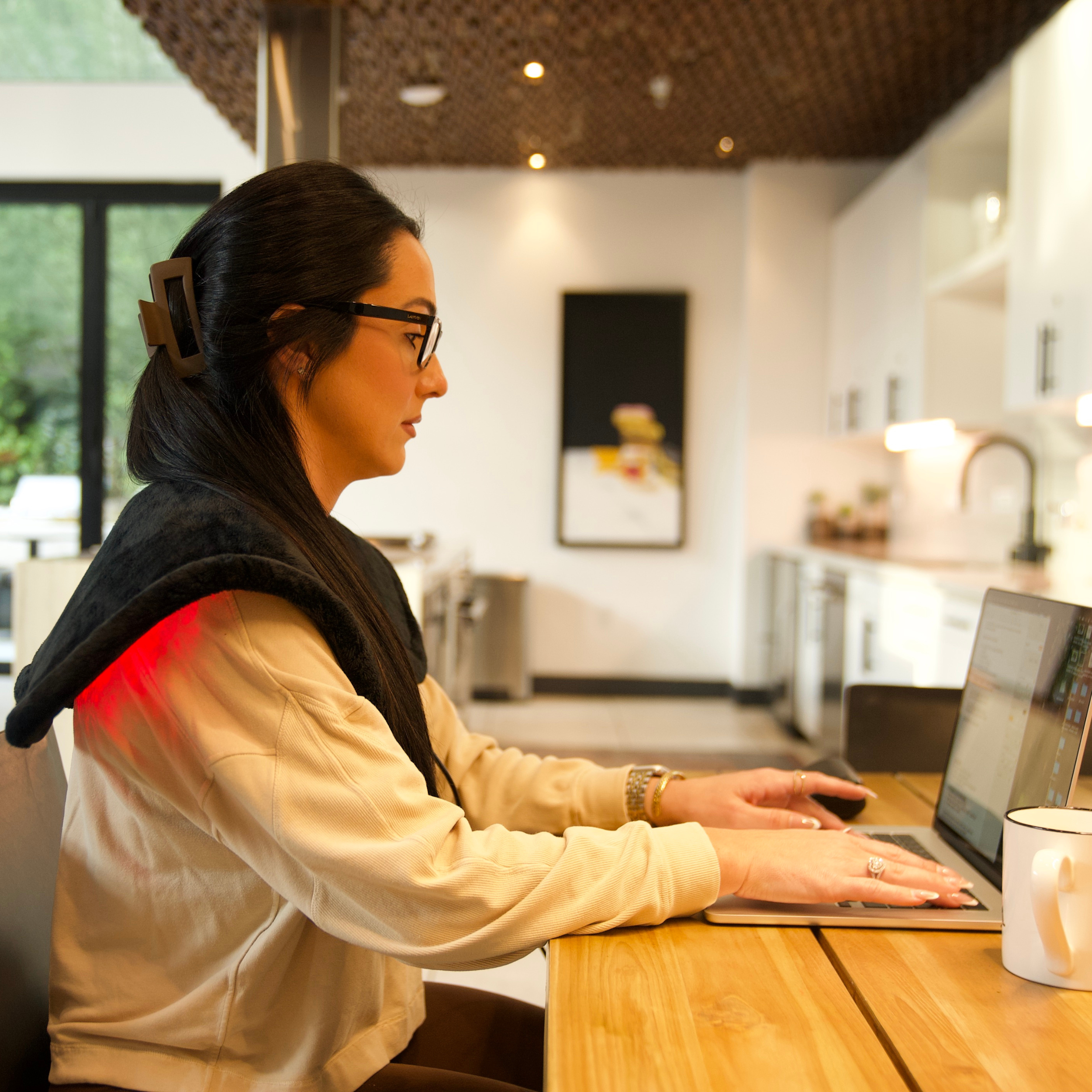 The Therasage Perfect Pad incorporates advanced polychromatic LED technology, delivering targeted healing light frequencies across the red and near-infrared spectrums. Designed to perfectly contour the shoulder, neck, and upper back areas, it integrates natural tourmaline stones for negative ion emission, enhanced grounding, and added EMF protection.