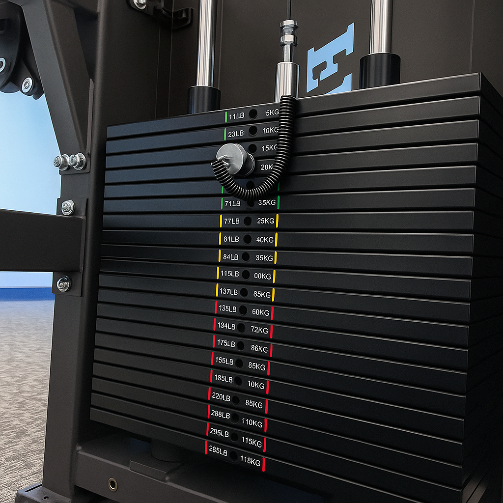 Weekly: Check weight stack pins, adjustment points, and guide rods for smooth operation